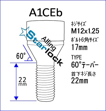 A1CEb スターロック 色:ブラック アルファロメオ フィアット M12xP1.25 60°テーパーHEADLINE