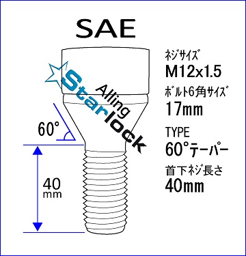 SAE スターロック 色:シルバー メルセデスベンツ M12xP1.5 60°テーパー 首下40mm HEADLINE