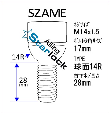 SZAME スターロック 色:シルバー メルセデスベンツ M14xP1.5 球面14R 首下28mm HEADLINE