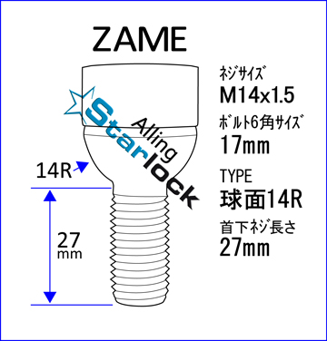 ZAME スターロック 色:シルバー メルセデスベンツ M14xP1.5 球面14R 首下27mmHEADLINE