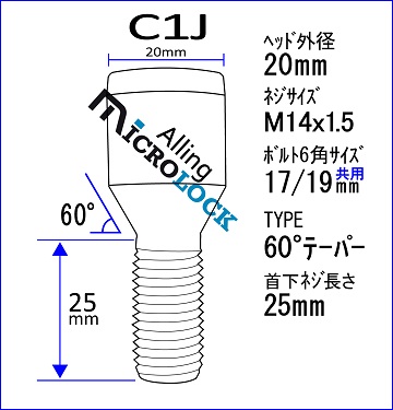 色:シルバー 小径ボルト穴社外ホイール用M14xP1.5 60°テーパー 首下25mm