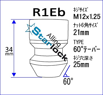 R1Eb スターロック 色:ブラック 日産、他 M12xP1.25 60°テーパーHEADLINE