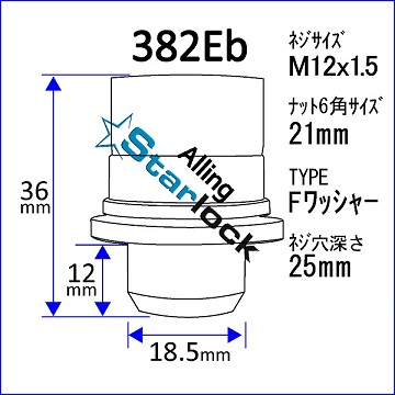 382Eb スターロック 色:ブラック トヨタ、レクサス用 M12xP1.5 平座金/ワッシャー付HEADLINE