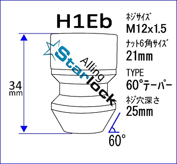 H1E スターロック 色:シルバー トヨタ、マツダ、ミツビシ用 M12xP1.5 60°テーパーHEADLINE