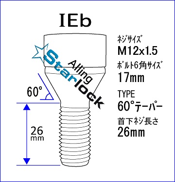 IEb スターロック 色:ブラック VW BMW M12xP1.5 60°テーパー 首下26mm HEADLINE